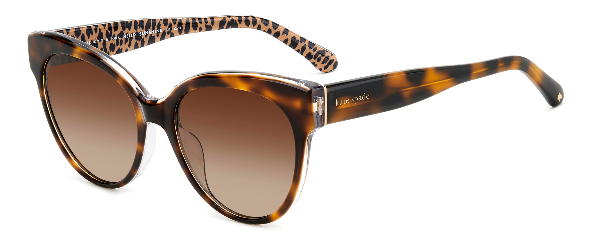 KATE SPADE embodies optimist femininity, and these women’s sunglasses are proof. Their cheery character is seen in the acetate temples decorated by special prints, and the HELLO SUNSHINE inscription on the inside. They're perfect to wear over and over again, especially when they hold prescription lenses.