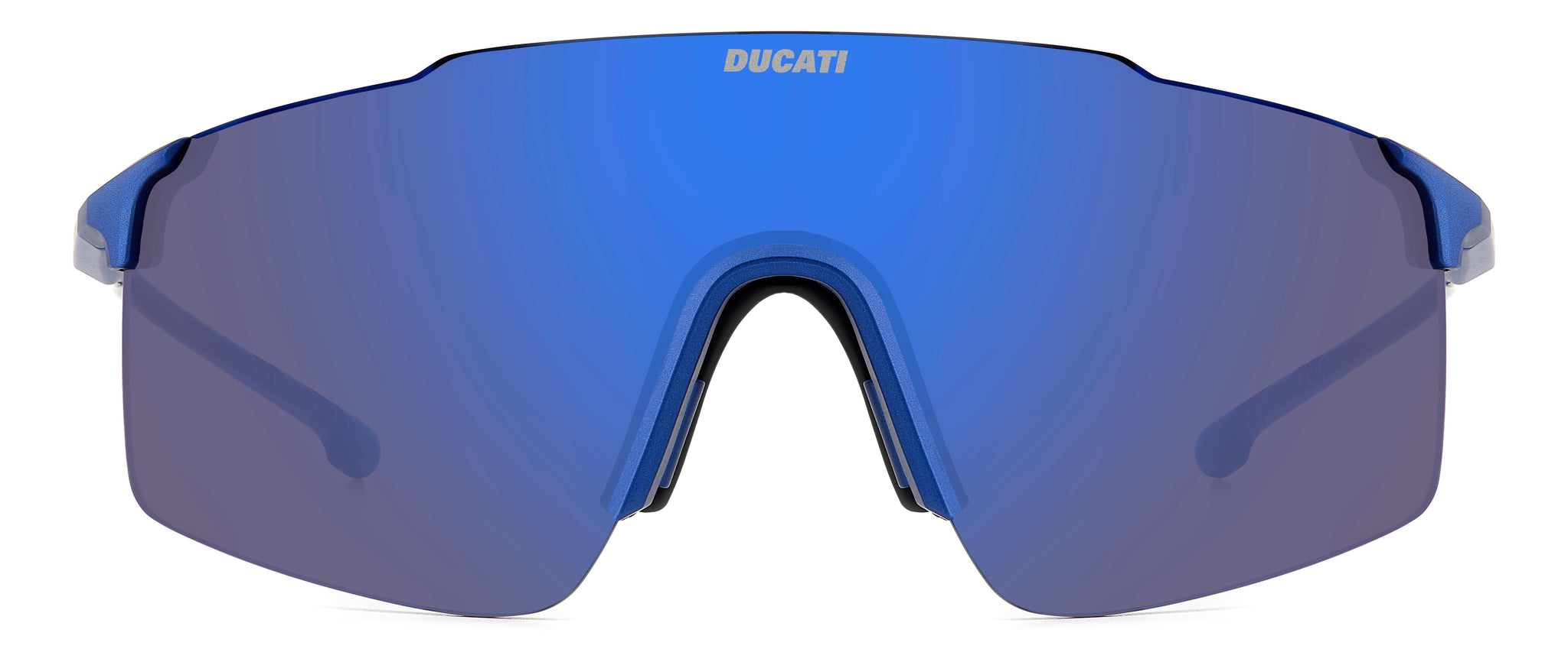 From the world of fashion to races at the track, these sunglasses by Carrera | Ducati are a round-trip journey of inspiration. The shield front is formed by a maxi-lens with a rimless design and Ducati logo detail front and centre. It also comes in a mirrored version that's perfect for decisive looks. Stability and comfort are provided by the adjustable ergonomic nose pads. The temples are slim and lightweight, extending into straight end tips in shiny rubber that facilitate their use under a helmet.