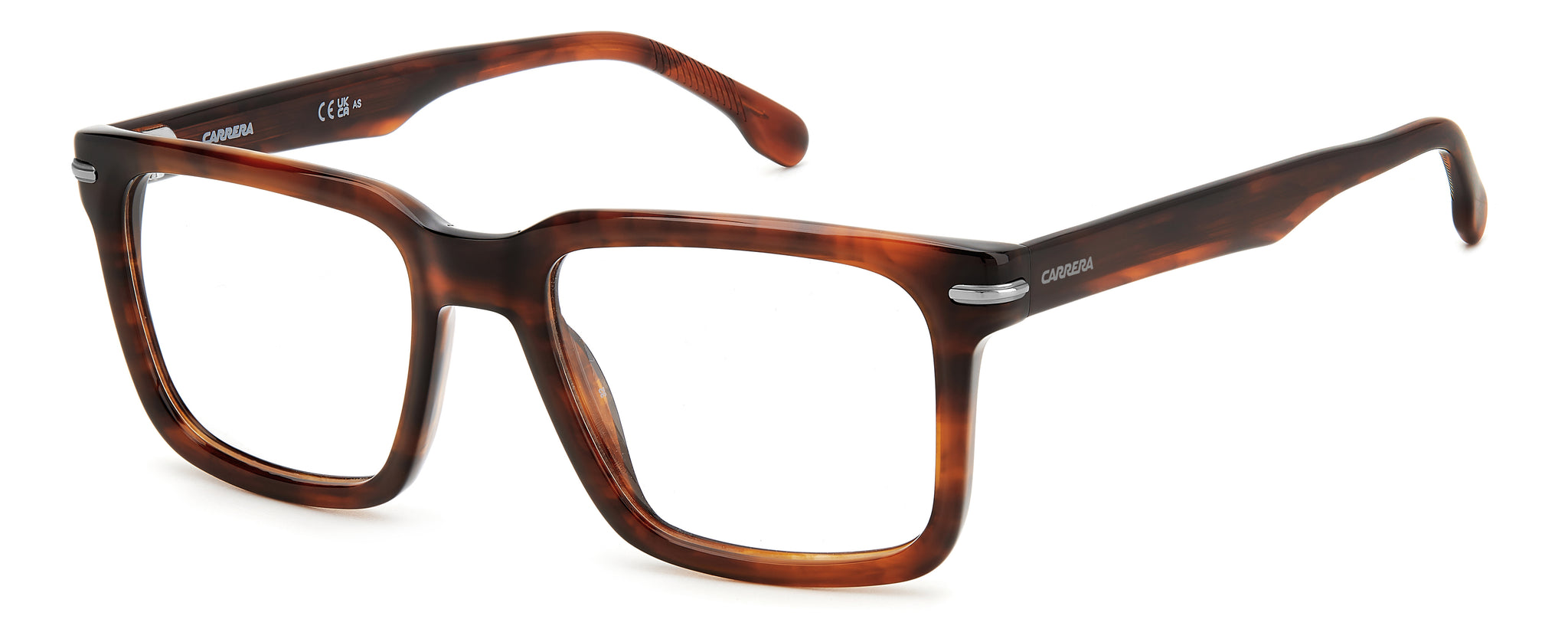 Carrera has designed these eyeglasses with an impeccable interplay of shapes and proportions so that you’ll want to wear them every day. The bold, sculpted acetate structure comes in different colour palettes, including multi-layer and transparent with a patterned core. Carrera has signed this pair of glasses with its iconic raised ‘C’ on the front near the hinges, and the full logo on the fin temples.