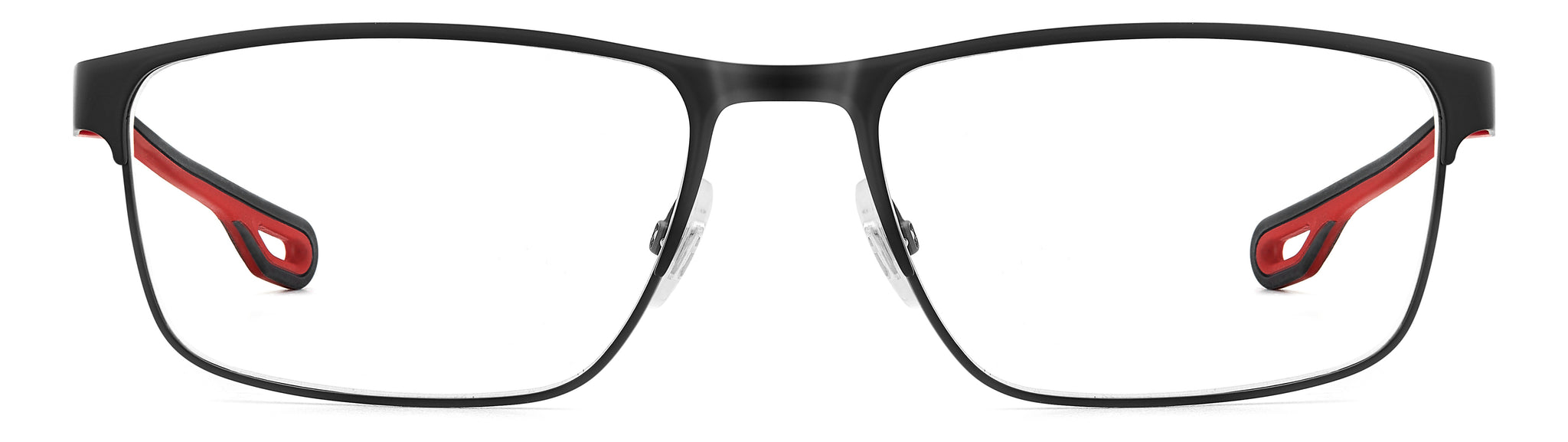 Athletic performance inspired these Carrera eyeglasses. They have everything necessary for an impeccable look: an essential front in stainless steel, adjustable nose pads and flexible hinges. The masterful Carrera touch is the injection-moulded temple in two colours, with its decisive forms and rubber inserts which echo the Carrera flag. The holes in the end tips, a detail dedicated to active lifestyles, are sure to get noticed.