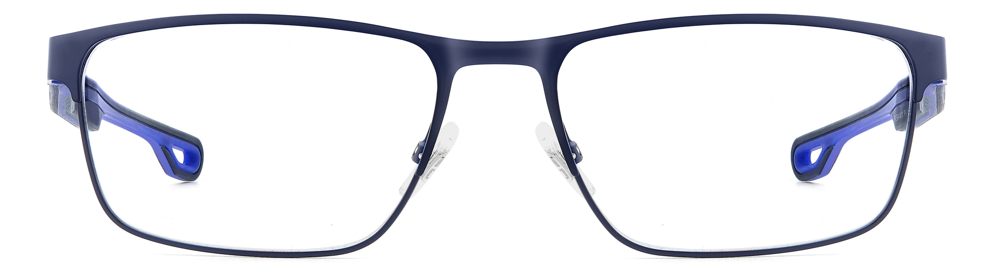 Athletic performance inspired these Carrera eyeglasses. They have everything necessary for an impeccable look: an essential front in stainless steel, adjustable nose pads and flexible hinges. The masterful Carrera touch is the injection-moulded temple in two colours, with its decisive forms and rubber inserts which echo the Carrera flag. The holes in the end tips, a detail dedicated to active lifestyles, are sure to get noticed.