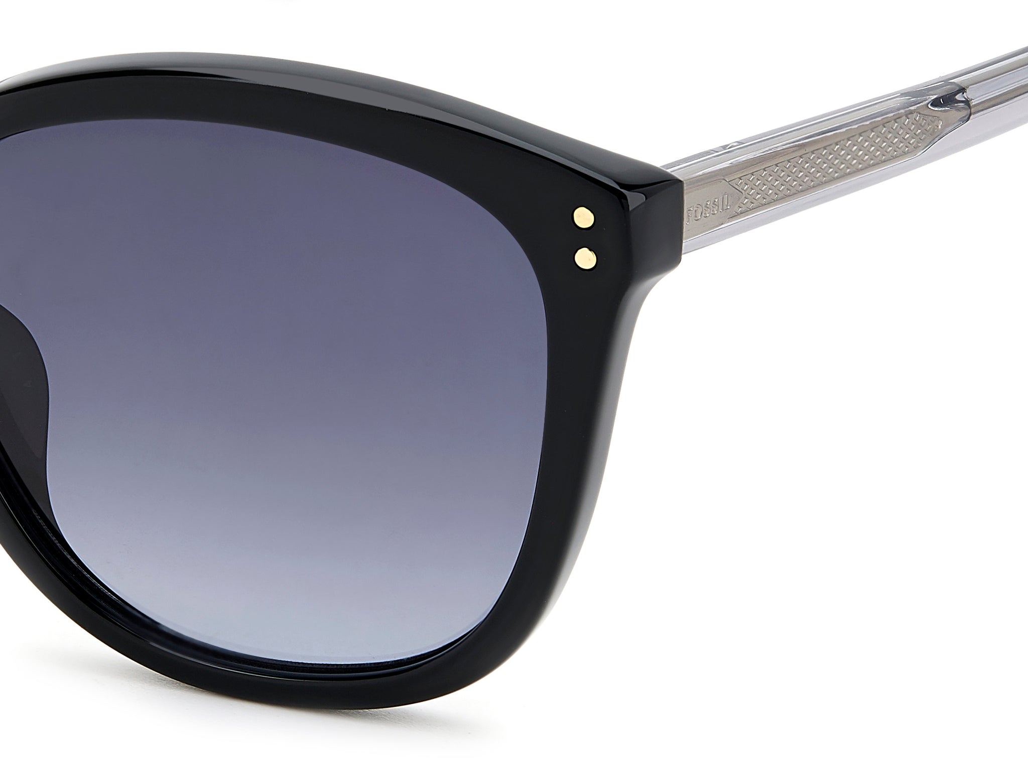 These FOSSIL women's sunglasses are a timeless choice. The feminine shape of the front is brightened by small round rivets. The acetate temples are transparent, letting the finely chiselled metal core show through. These glasses come in neutral and on-trend colors, and they can be fitted with prescription sun lenses.
