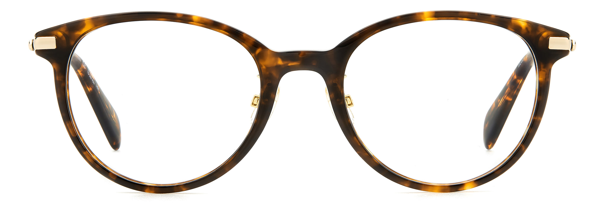 In metal with acetate on the front and end tips, the mix of hues, patterns and shading used on these KATE SPADE eyeglasses is striking. The color palette, the KATE SPADE logo, and the SO HAPPY TO SEE YOU inscription on the inside of one temple make this style undeniably unique.