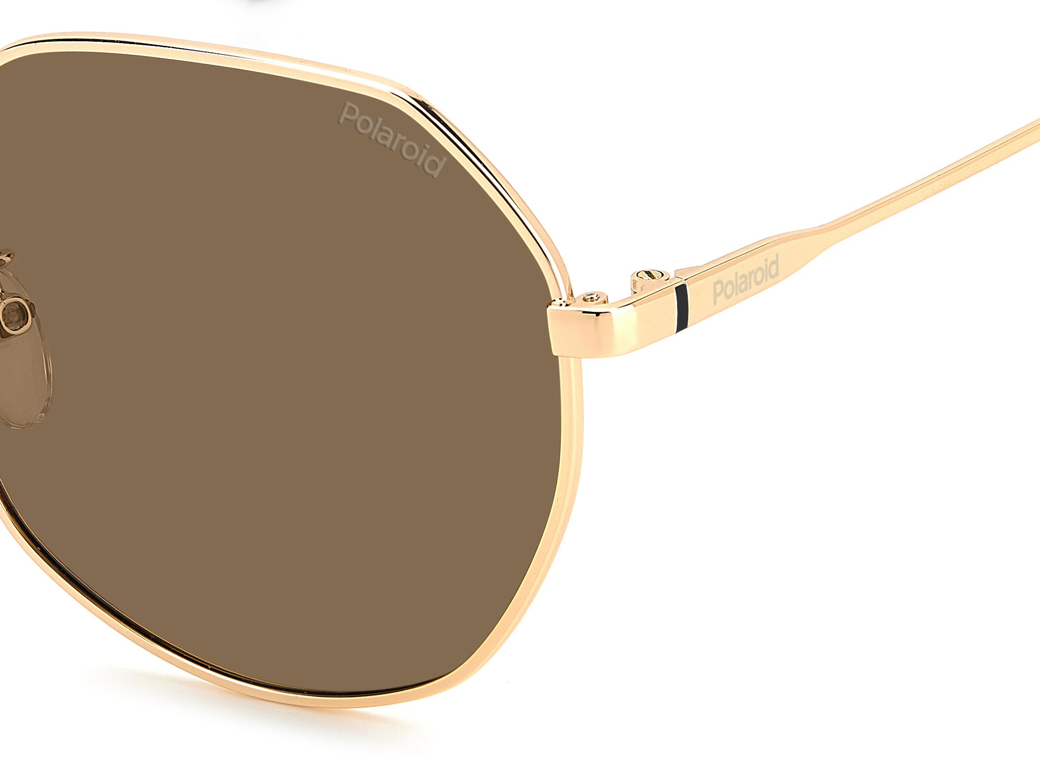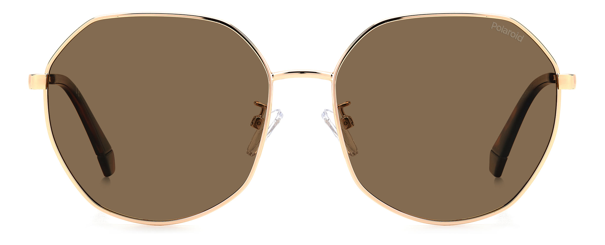 These Polaroid sunglasses with RX-able lenses have a slim metal frame and a geometric front with comfortable adjustable nose pads. This women's eyewear style features a coloured detail on the end pieces and the iconic contrast-colour temple tips.