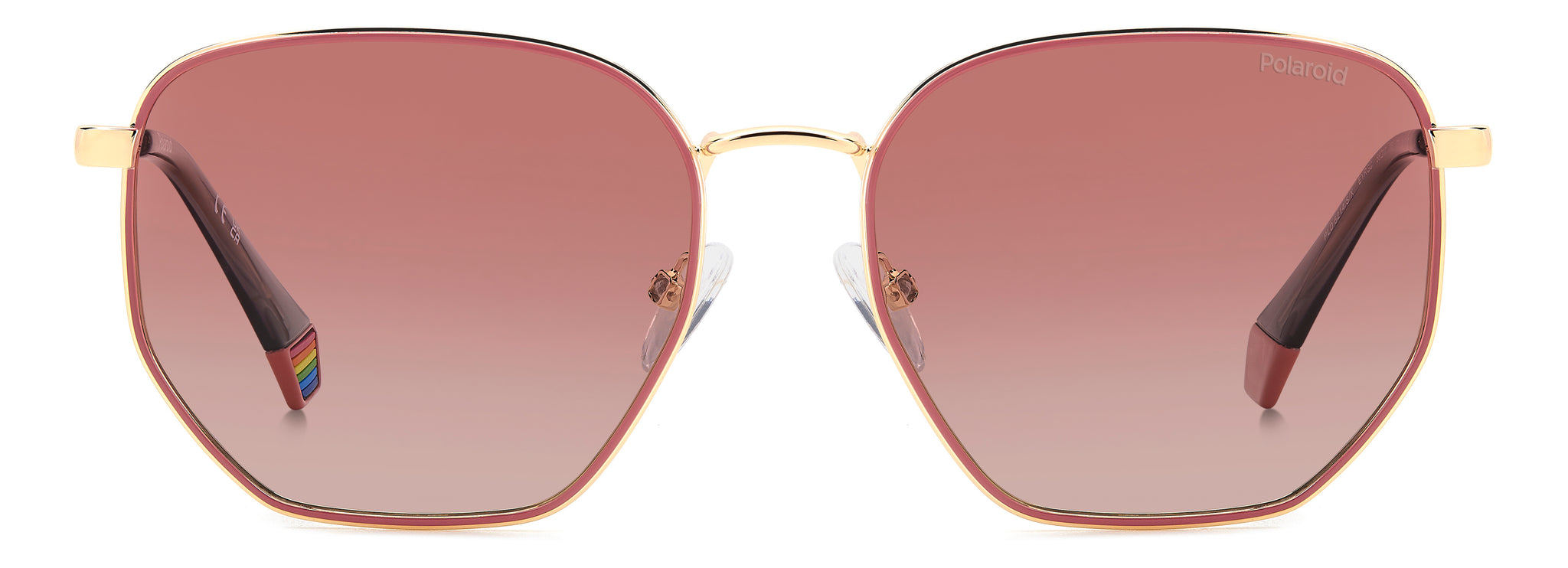 Nothing but love for these Polaroid sunglasses which will bring unrivalled cool to any outfit. The geometric silhouette is a contemporary take on minimalist frames. Comfort is also a priority: the polarized lenses are set into lightweight stainless steel rims (which can also hold prescription lenses) which rest on adjustable nose pads. The slender temples are decorated by a laser-engraved logo and completed by end tips with a rainbow insert. The enamel-front versions add a pop of Polaroid colour.