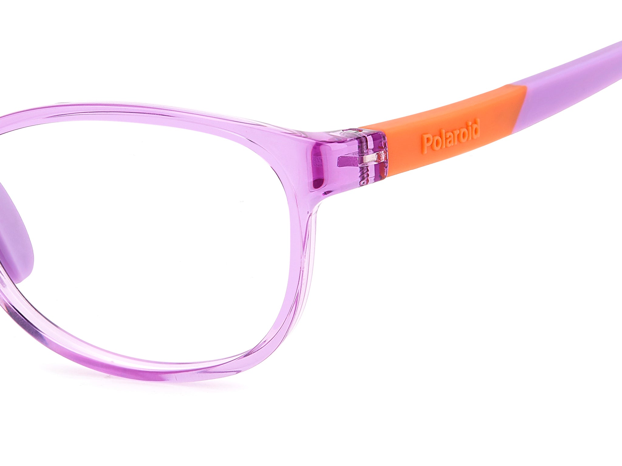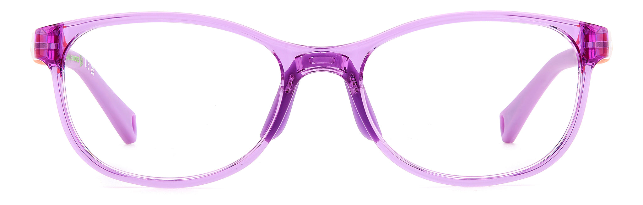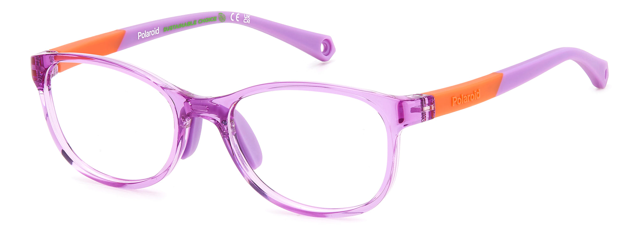 These Polaroid eyeglasses are designed for girls between 4 and 6 years old. The front features soft shapes and rests comfortably on adjustable rubber nose pads. Rubber also cushions the temples, which are super flexible thanks to their wire core in Memory Metal, a material that returns to its original shape even if twisted or bent. For complete stability, attach the elastic strap which can be purchased separately. Polaroid has also thought of the future of little ones by choosing sustainable materials.