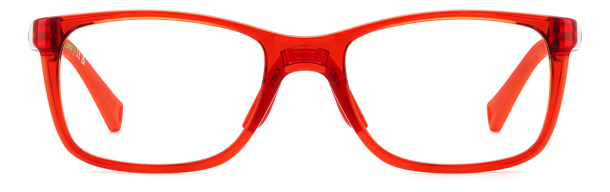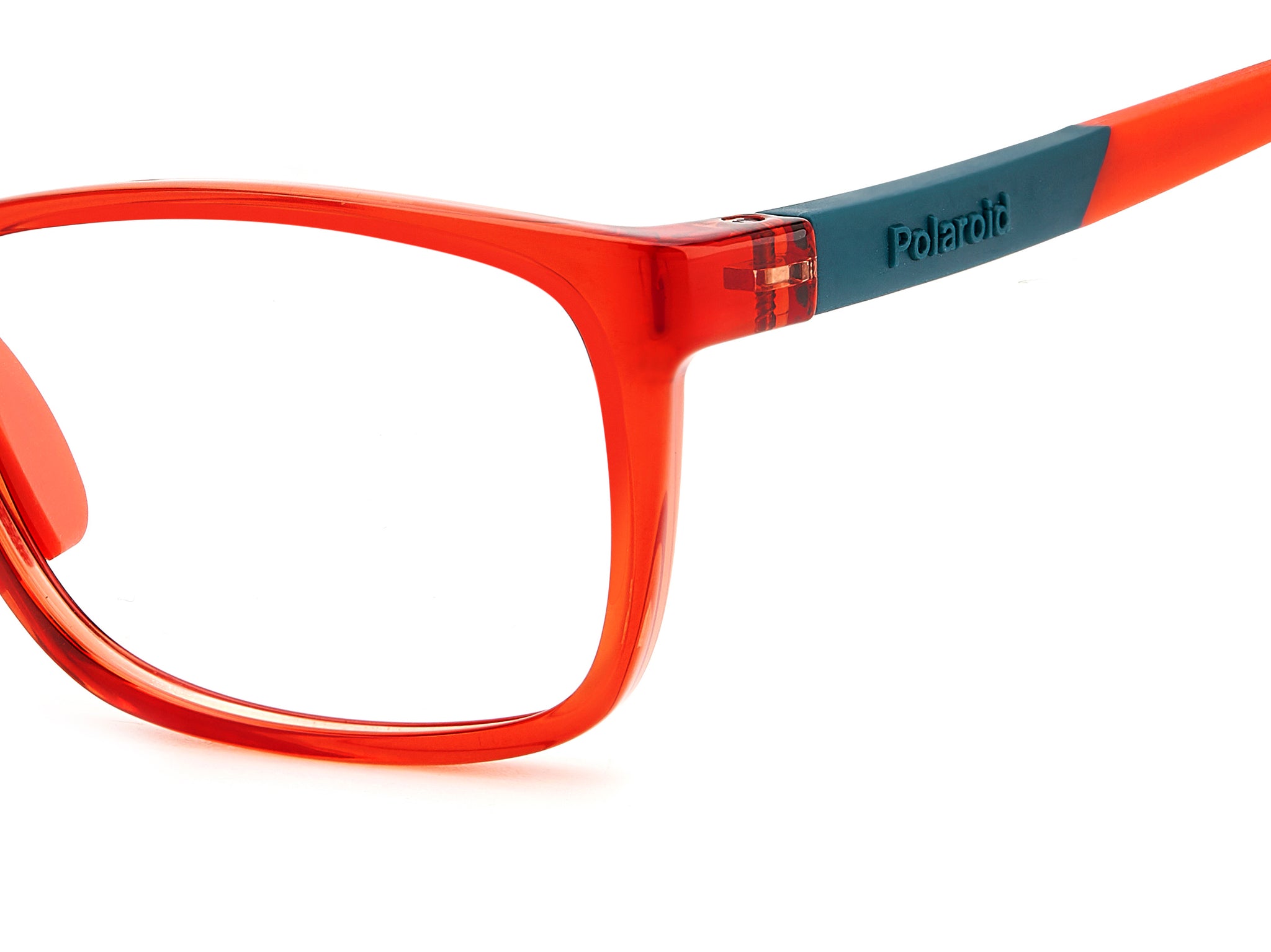 These Polaroid eyeglasses are designed for boys between 4 and 6 years old. The rectangular front in eco-polyamide features adjustable rubber nose pads for no-slip grip. The soft rubber-coated temples conceal a Memory Metal core, a material that always springs back to its original shape, even if folded or bent. This style can be completed by an elastic strap, purchased separately. The ‘Sustainable Choice’ inscription attests to Polaroid's green commitment.
