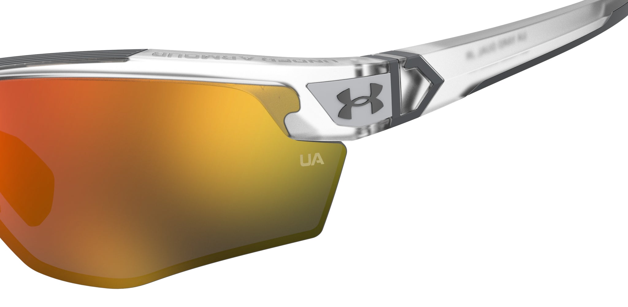 Ideal for sports and an active lifestyle thanks to their dynamic design, these Under Armour semi-rimless dual sunglasses for kids have a rubberized brow detail, UA ArmourGrip nose pads for ultimate comfort and adjustablity, water and smear resistant coating on the lenses, and are ANSI certified which provide an extra level of protection. There is an the auto-locking rubber hinge providing extra durability and the temples include an option for lanyard compatability. The colorful UA Diamond motif and the UA logo let the world know who made these truly unique glasses.