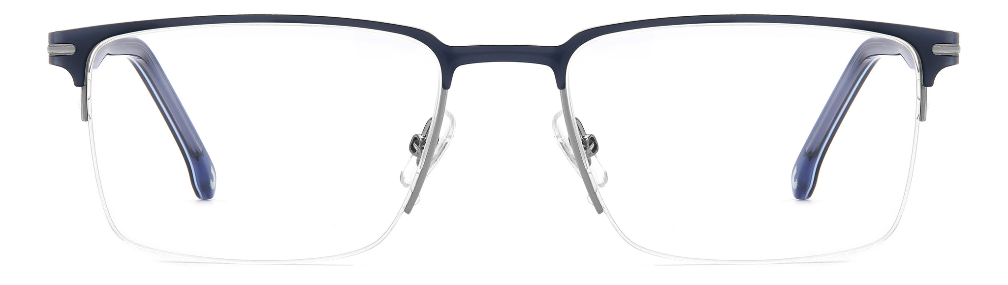 The perfect pair of eyeglasses, the kind that can be worn with any look, unites aesthetics and practicality. With that in mind, Carrera has crafted this interesting style: a flat half-rim front in stainless steel, worked into a masculine rectangular shape. The temples are in acetate, offered in classic colours or in multi-layer versions, but always trimmed by the full logo. Adjustable nose pads, flexible hinges and the option to choose between two lens sizes ensure a personalised fit.