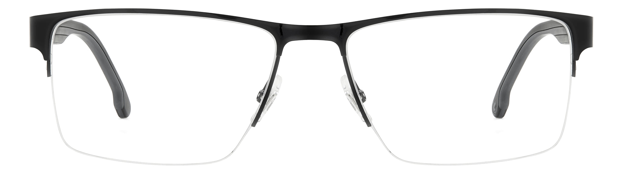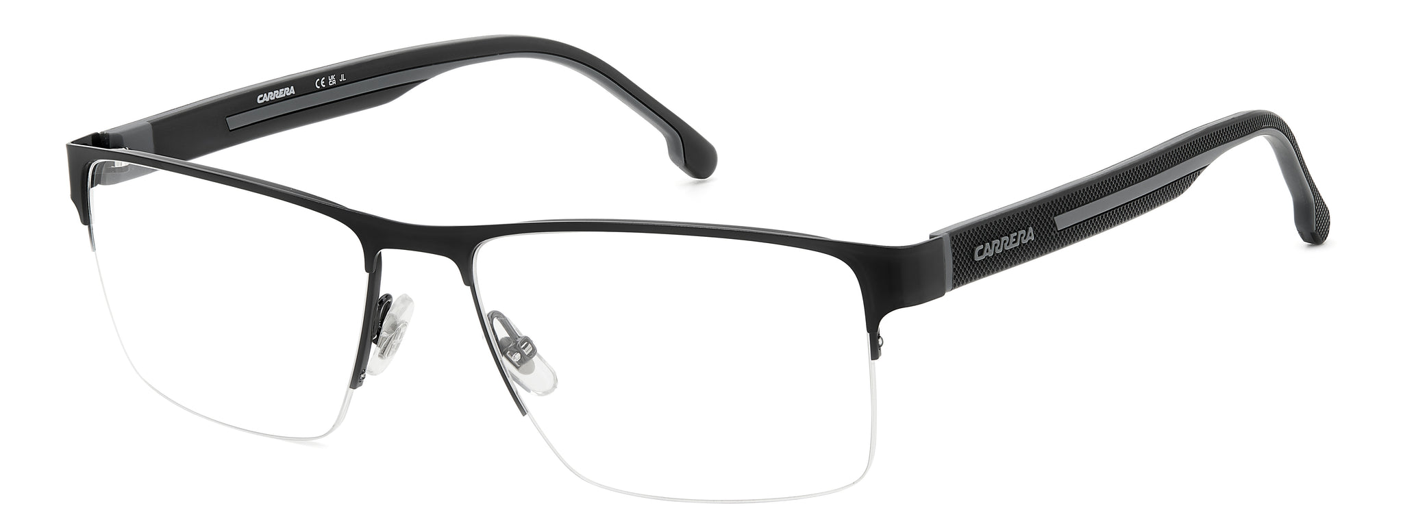 Get the adrenaline rush of sports day after day with these Carrera eyeglasses. Their half-frame rims are even more comfortable thanks to the use of lightweight stainless steel, resting on adjustable nose pads. The bi-injected polyamide temples, with rubber inserts that recreate the Carrera flag, convey a sporty attitude.