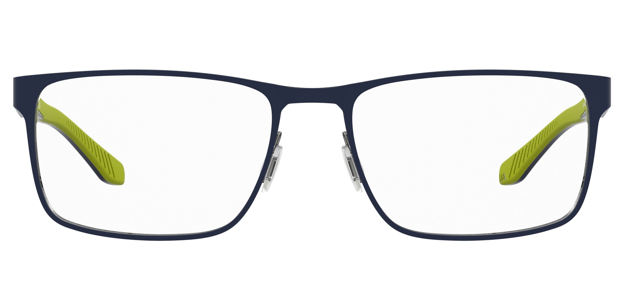 Under Armour is updating its most beloved styles, resulting in these eyeglasses with rectangular frames and must-have qualities. The stainless steel front rests on adjustable non-slip nose pads. The temples are in TR90, offering a perfect fit thanks to flexible hinges and end tips covered in soft rubber in a contrast hue. A clearly visible metal logo trims the temples.