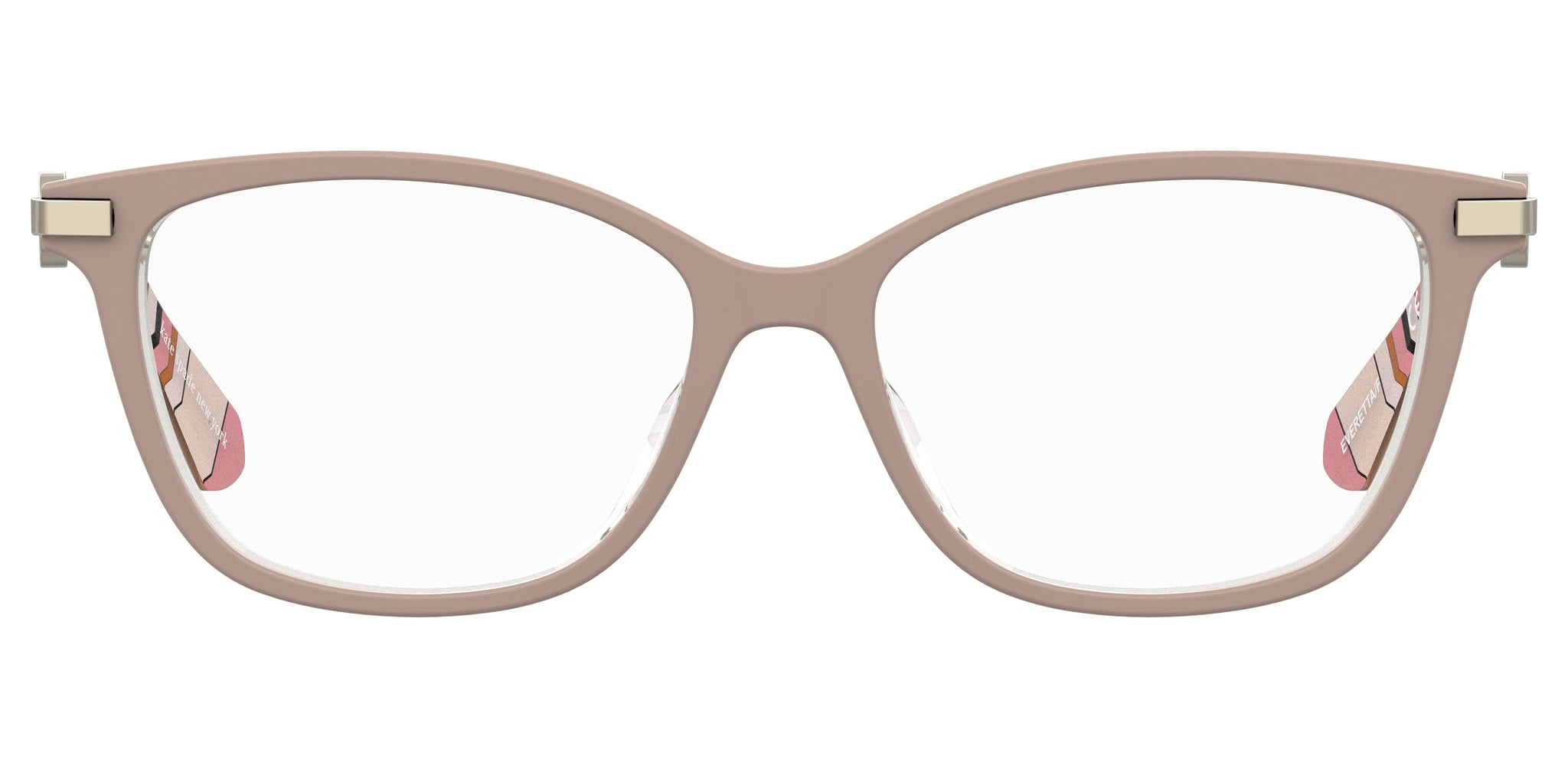 With a mix of glamorous allure and iconic details, these Kate Spade eyeglasses are a true must-have for sophisticated, on-trend women. Impeccable acetate rims embrace the lenses. A cut-out logo characterizes the temples, breaking up the continuity of their ultra-slim stainless steel silhouette, becoming a distinctive element its own right. The secret SO HAPPY TO SEE YOU inscription and the special pattern that defines the ends infuse this style with vivacity.
